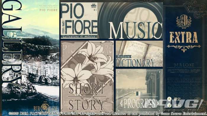 《晚钟》除AVG游戏普遍设有的画廊、章节选择等,还设置了“辞典”功能,在游戏中玩家遇到的专有名词解释可以随时在“辞典”处查询。值得一提的是游戏通过百合花与画面的清晰度来代表角色的好感攻略进度,也是相当独特的表现手法。