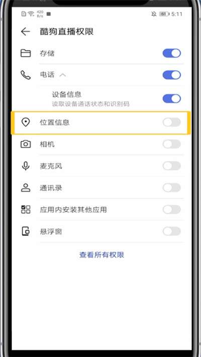 5、关闭酷狗直播的位置权限即可