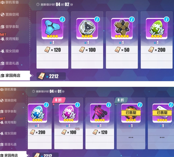 另外还有光辉纯晶、家园补给卡、爱因斯坦环磁机、超导金属氢等兑换项。