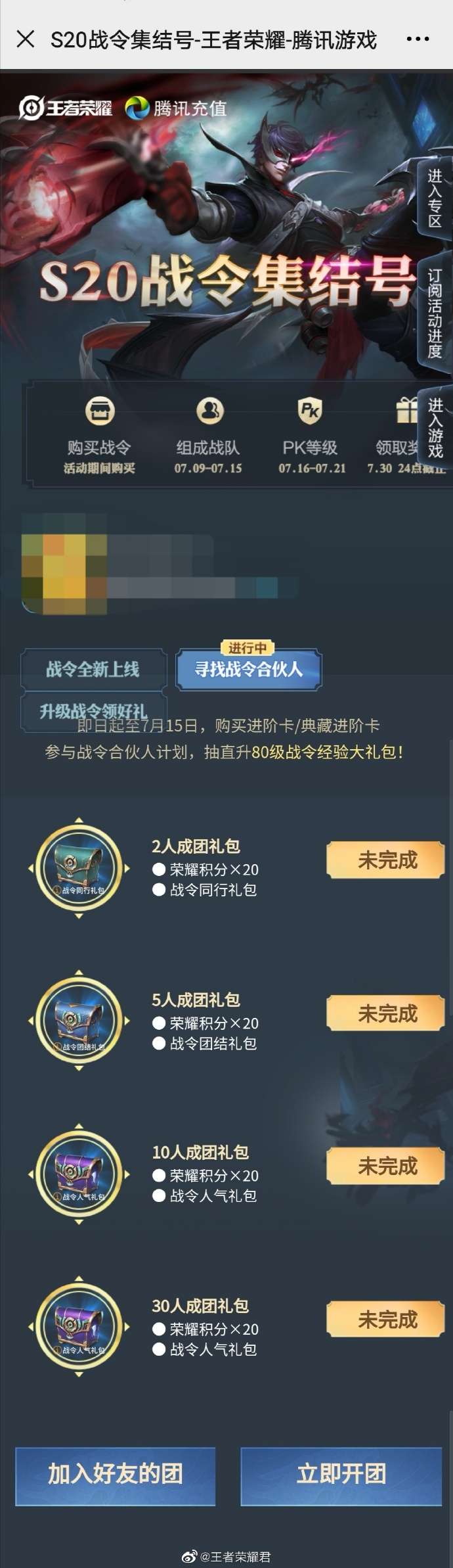 王者荣耀手游中很多小伙伴不知道活动时间及拼团玩法,也不清楚S20战令集结号活动是什么,今天小编就带着大家了解一下王者荣耀S20战令集结号活动攻略;