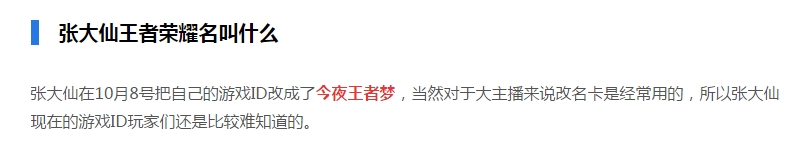 张大仙成名英雄李白,风 骚的解说和犀利的游戏风格为其赢得了第 一批直播粉丝,不过现在,张大仙更多是以国服第一露娜的身份被人了解,其实张大仙擅长的英雄很多,李白、露娜、花木兰、韩信、孙悟空等张大仙玩的都是一 流水准。