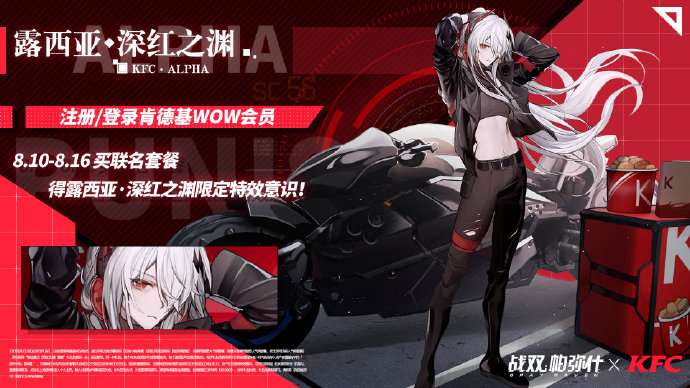 A1:“露西亚·鸦羽5星定制意识”的领取和兑换将在8月17日开启,届时购买指定联名套餐即得该限定意识礼包兑换码,请耐心等待~即日起至8月16日,购买指定套餐,可获得“露西亚·深红之渊5星定制意识”礼包兑换码。订单完成后48小时内,电子礼包兑换码将自动存入用户肯德基APP首页“卡包-【商城】”内。