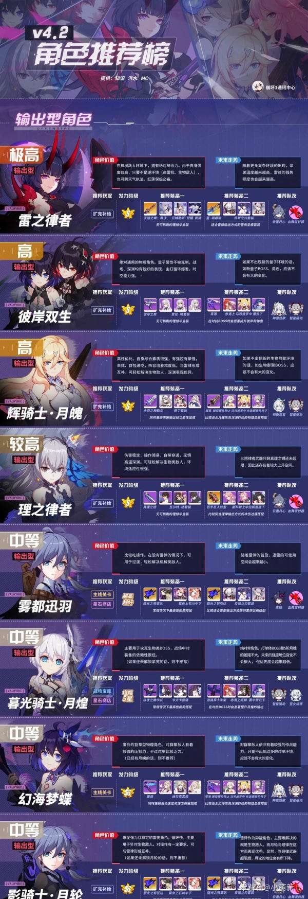 以上就是崩坏3V4.2最新角色强度节奏榜,相信小伙伴们看过这篇文章后都会有所收获,想了解更多精彩游戏攻略资讯内容请继续关注pk1xia游戏网,记得收藏哦!家有帮助。