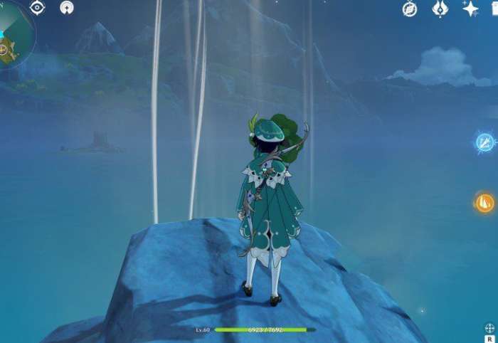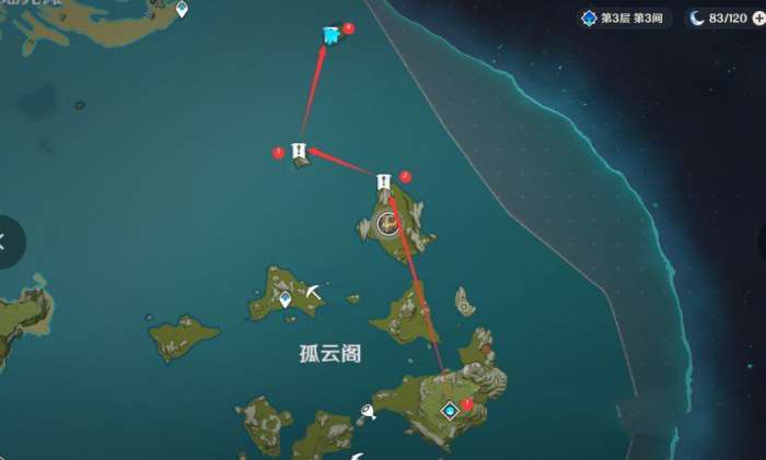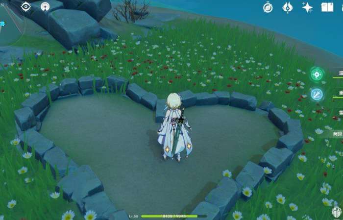 先到达2号点,在无相之岩最北方有一个风车,使用风属性技能吹动产生风场。