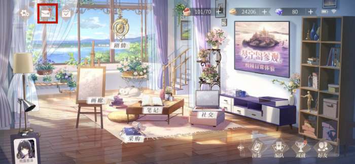 1、首先进入到游戏的主界面,完成序章第九涨绘画学习才能出现邮件按钮。