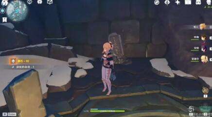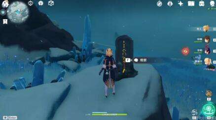 然后我们就可以来到洞窟门口,从七天神像出发,一路向南,不要跳下悬崖,最后来到与神像南方位点重合的地方(实际上在该传送点上方)使用三个匣子打开洞窟。里面有一块石碑