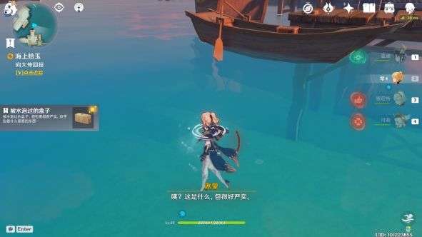 获得莫拉后,继续清理下一个点的漂浮物(木盒)。