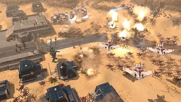 从预告中看,除了步兵,玩家还可使用机甲和运载飞船,并派遣工程师制造防御工事、炮塔并布置雷区。虫群虽然没有高科技,但它们有数量游戏,并且可以使用视野不对称的特性对玩家进行偷袭,游戏中玩家只能看到己方单位视野内的敌人。