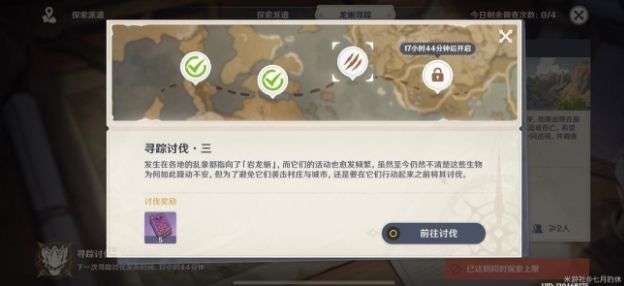 前往讨伐,大地图页面将会标记一处「岩龙蜥」所在地,前往所在地进行完成对应解谜,即可发现「岩龙蜥」,击败「岩龙蜥」将能获得对应奖励。