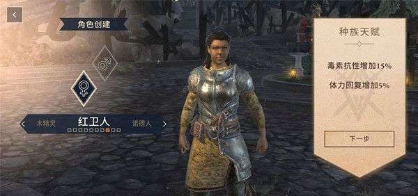 如果说帝国人是策略家,那么红卫人(Redguard)就是彻底的战士。他们的天赋是毒素抗性增加15%,体力回复增加5%。红卫人似乎就是为战斗而生的,不仅拥有超于常人的力量,还拥有惊人的灵活性,能在战斗中展现出各种不同的技巧,是泰姆瑞尔大陆上最具天赋的战士。虽说没有肉眼可见的发达肌肉,但红卫人的身体同样坚韧如钢,对毒药有天然的抗性。红卫人思***立,比起高度统一军队,他们更适合单枪匹马作战。