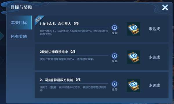 每一关都会有一系列技巧目标的挑战,完成这些目标即可通过试炼,并获得英雄熟练度奖励。
