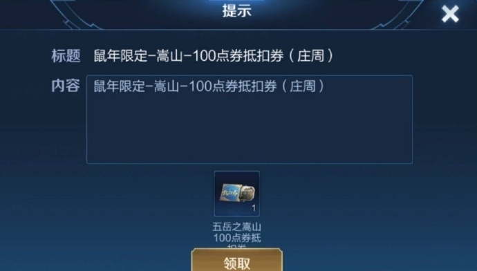 在王者创意互动周·弹奏歌曲拿好礼的活动中,其中一份好礼是鼠年春节皮肤优惠券。任务完成后,不少玩家拿到了五位英雄的鼠年限定皮肤优惠券,他们分别是: