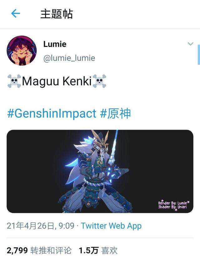 根据原神外服内鬼的爆料,1.6稻妻的初步开放将伴随着新的区域Boss的到来,这个Boss的日语罗马音是“Maguu Kenki”,写成日语就是魔偶剑机。通过对游戏的拆包,内鬼们不仅放出了魔偶剑机的立绘,还发现了印有该Boss的挑战奖励名片,魔偶胸前的雷电纹章也印证了它的身份。