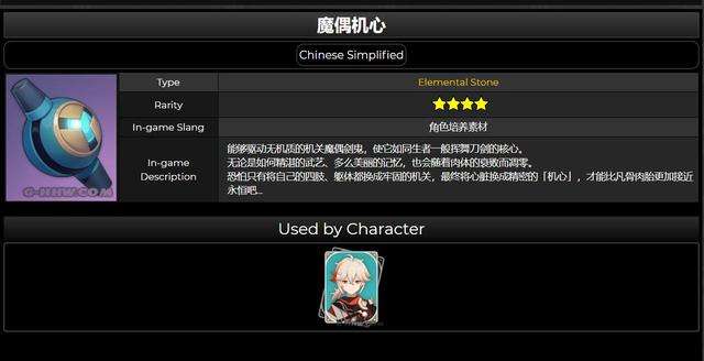 这个手持巨型武士刀的巨大机械人偶有明显的日本武士风格,和崩坏三的地藏御魂有异曲同工之处。对于很少面对大型人形怪的原神玩家来说可谓不小的挑战。除了魔偶形象的曝光,内鬼还揭露了它的掉落物魔偶机心,还表示该掉落物会成为枫原万叶的特殊等级突破材料。