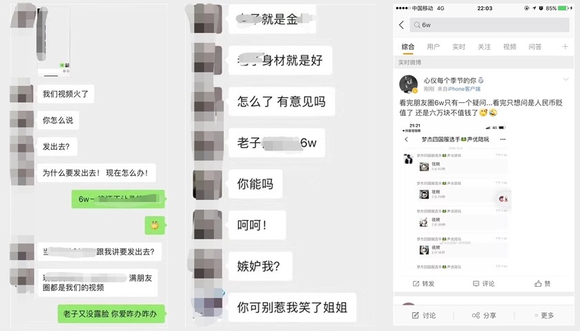 这是是一个男的花6W约会一个网红,事后网红要价6W,男的觉得被坑但又不服气,自己把过程录下来,并且发了出去,而且男的和女的是一个圈子的,发出去后导致很多人的朋友圈都是这个消息。
