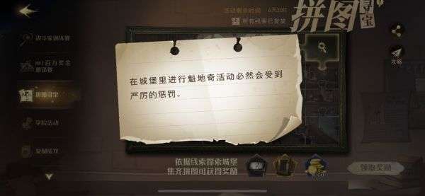 今天哈利波特魔法觉醒手游中给出的10.13拼图线索提示是:在城堡里进行魁地奇活动必然会受到严厉的惩罚