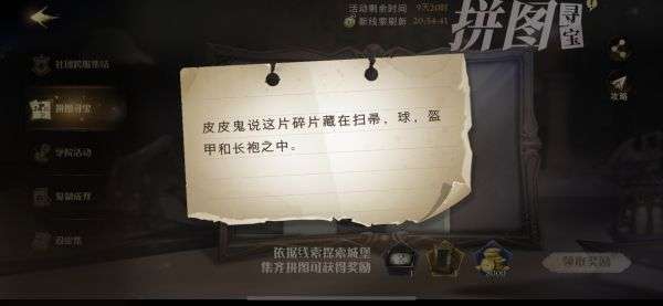 今天哈利波特魔法觉醒手游中给出的10.24拼图线索提示是:皮皮鬼说这片碎片藏在扫帚,球,盔甲和长袍之中