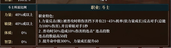 面板下半部分其他职业中可看到所有一转职业所需比例以及职业特色