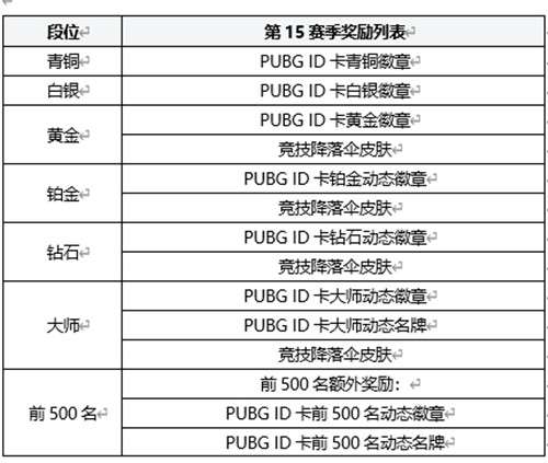 新的竞技赛季即将在本次更新后开始!与此同时,系统也会根据玩家们上赛季的最终段位来发放第15赛季的奖励。在第16赛季的征程开始之前,先一起来确认一下您应得的奖励吧!