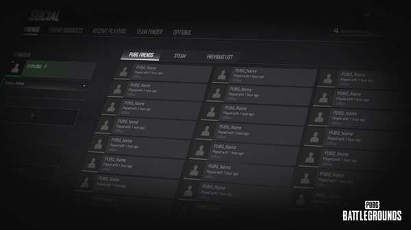 PUBG好友 / 平台好友 / 先前列表