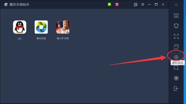 1、打开腾讯手游助手,随便运行一款游戏,运行游戏后会打开腾讯手游助手的游戏窗口,在这个窗口右侧的功能列表中就可以看到“虚拟定位”功能了;