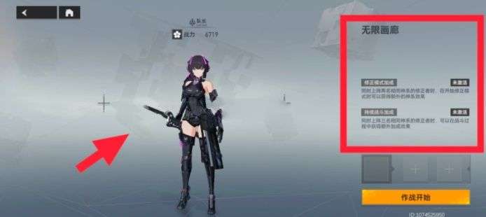 挑战无限画廊的角色只能是:“朔望·月读”,并且修正模式加成是没有激活的;也不能添加任何一个角色进入队伍中。