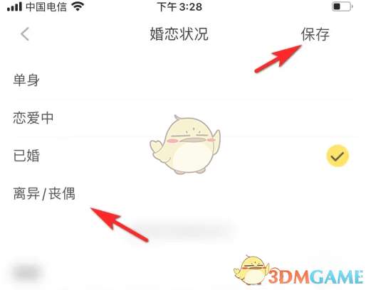 5、勾选目标情感状况的选项后,点击右上角保存的选项即可修改情感状况。