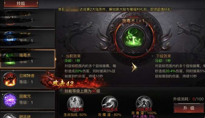 道士这个职业身上的优势,还是有一些比较明显的用法,大家后期玩道士的话,其实在角色的走位效果当中,只要稍微花一些时间去熟悉就可以了,因为后期可以达到的能力当中会有很多召唤流的技能效果,比如说圣兽召唤物,在他召唤出来之后,可以为他进行抗伤,包括道士自身的输出能力当中,大家也是可以看到他生存效果当中,基本都是使用这些召唤神兽带来的基础提升,所以目前最适配的技能搭配当中,召唤神兽类型的技能是要快速加点起来的,而且他在抗伤害的时候基本都是靠的这里前排神兽,而他自己进行远程输出的话,目前在挂机刷怪的时候会有更强大的生存能力,所以用道士来进行挂机,在升级速度上面也会有比较好的一个效率,另外他比较好用的技能效果当中有一个施毒术。