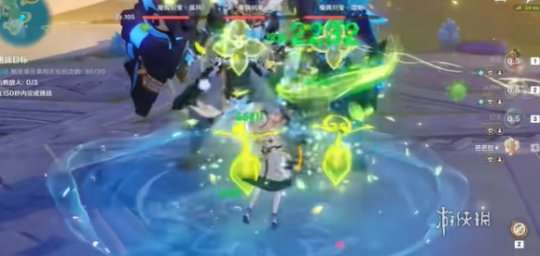 然后释放草主或瑶瑶的大招和技能,最后心海开大站场触发种子即可轻松过关。