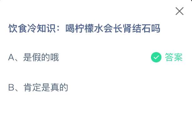 以上就是饮食冷知识:喝柠檬水会长肾结石吗,支付宝蚂蚁庄园2025年6月19日答案最新,更多精彩内容,请点击关注pk游戏网更新!