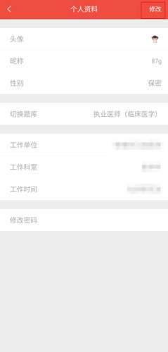 医考帮怎么切换执医和考研题,用户在我页面中点击个人资料-切换题库按钮,在个人资料页面中点击右上角的修改按钮,在个人资料页面中点击切换题库按钮,选择自己的身份,在选择之后就会有相对性的题库了。