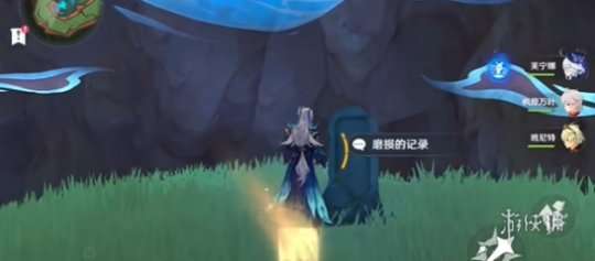 2、请与前方山坡上的中间石碑对话。