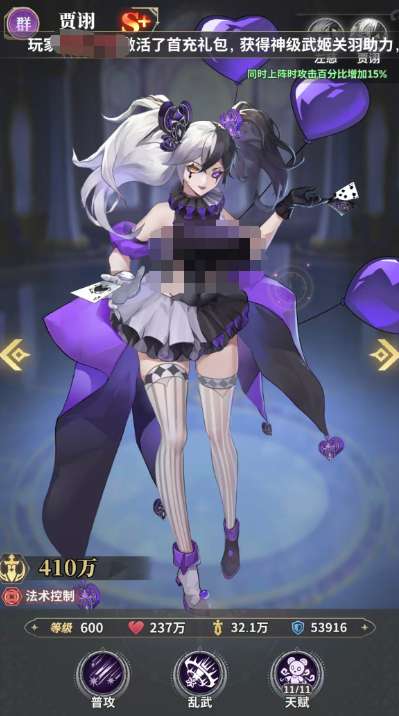 贾诩在这里的话,他的自身能力效果就是带来一定的法术控制,可以对随机的3个目标进行群体的拉扯,而且造成了115%的伤害之后,还可以让敌人身上获得乱舞的影响效果,这里乱舞是造成的一种随机攻击,不管是沉默还是受伤,提升10%或者是无法普攻,这些控制对敌人来说都是非常有用的。
