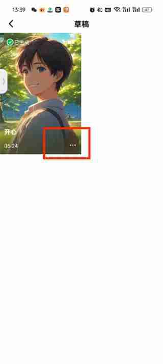 3、接着来到草稿的页面中我们选择一个需要删除的作品之后,在这里点击【三点图标】;