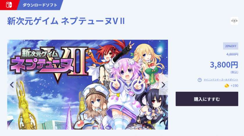 《新次元游戏:海王星VII》已于今日(2020年3月19日)登陆NS日服,目前已经开启了特惠预购,售价3800日元(原价4800日元),特惠截止日期为4月5日,感兴趣的玩家可以点击此处查看日服eshop商城页面。