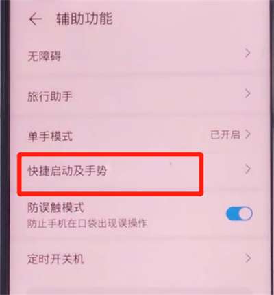 2.点击辅助功能,点击快捷启动及手势