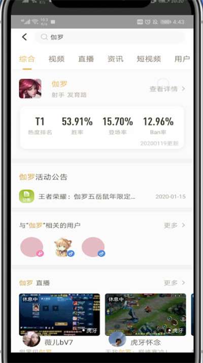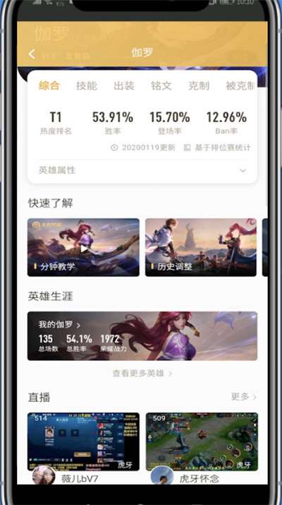 王者营地中看单个英雄的战绩的方法步骤