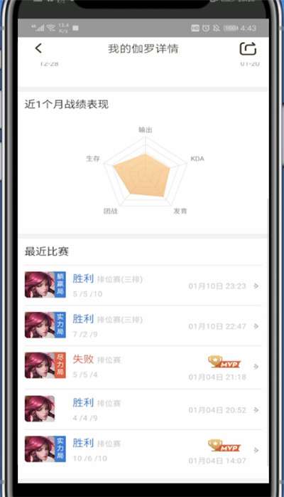 5、下滑即可查看该英雄最近的战绩