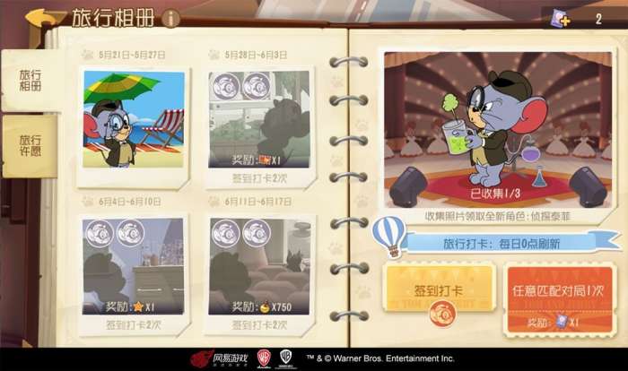 壕气十足的黑桃国王还为所有来到派对的客人准备了丰厚的回礼!5月28日登陆游戏,即可领取免费10连抽及一周年纪念头像框;参与生日旅行,可免费获取鼠阵营全新角色“侦探泰菲”;参与生日派对、好友助力、周年庆挑战、召回老友四大活动,还可赢得泰菲·糖果兔、侦探杰瑞·甜品侦探家、图多盖洛·白狐少女和雪梨·邻家女孩四款皮肤!