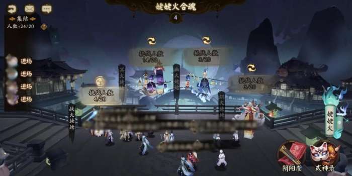 在集结期间,阴阳师大人们需要选择自己面对的姥姥火,每个分组都有人数上限。