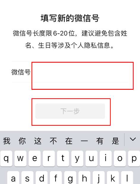 6、验证后进入微信修改页面,在输入框内输入自己准备好的微信号,点击下一步,完成。