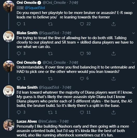 另外还有网友询问这次的改动会更偏向于一名战士类的英雄还是刺客,他表示正在努力让黛安娜的改动做到两者兼顾。如果到时候毕需要做出选择的话,他会倾向于大多数皎月玩家的喜好。但皎月目前有三种主要的玩法,分别是爆发流、法强攻速流以及半肉流,因此在选择时应该会出现一些分歧。