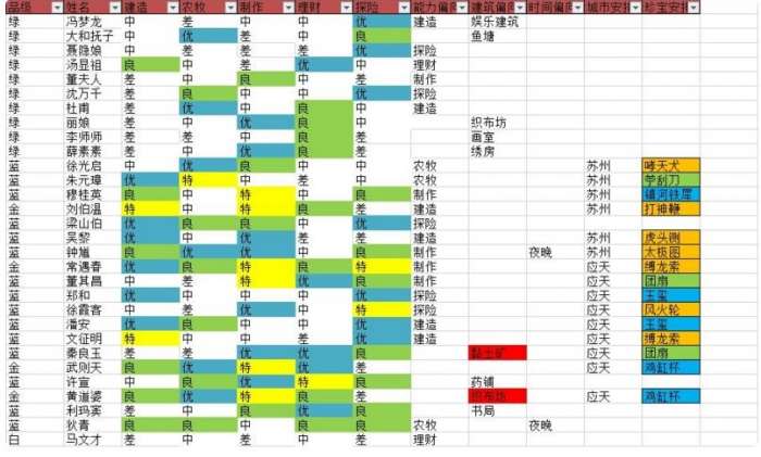 但策划的设计思路是每个人物都有自己的特点,即便是属性极其相似,也不会相同。例如吴黎、常遇春、刘伯温都有优以上的建造和制作属性,