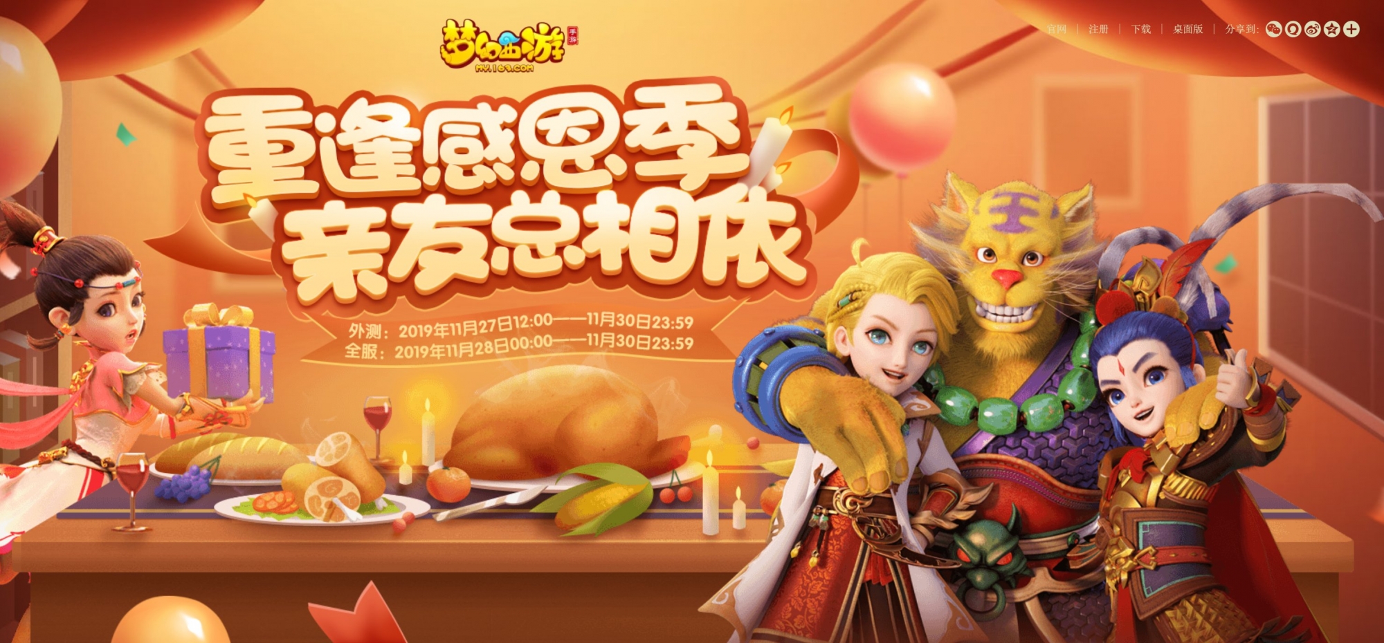 《梦幻西游》手游感恩节活动现在正在火热进行之中。玩家将走访西游世界的各个角落,邂逅新的惊喜,重温过往感动,并与好友相约,在接下来继续一路同行,见证彼此的成长!