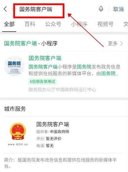 2.然后在搜索框中输入“国务院客户端”,点击并进入到小程序中。