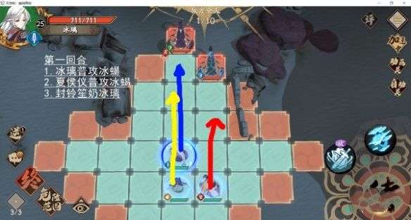 冰璃能再行动,再行动能移动五格,所以我们的过关重担就放在了冰璃身上,围绕冰璃制定过关策略就会简单很多。