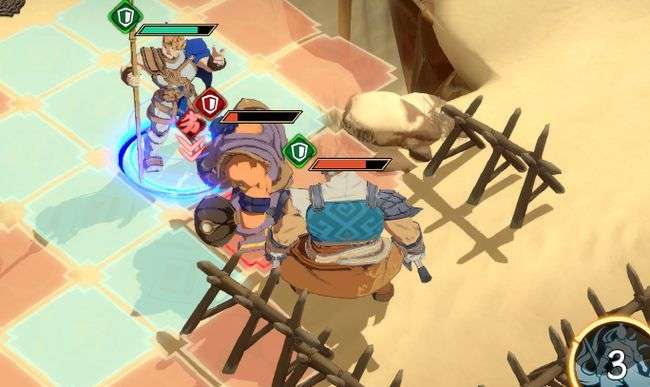 第三回合我们要后退一个格子,这样的话可以让小怪攻击到古伦德,古伦德可以利用自己的反击技能消灭小怪。