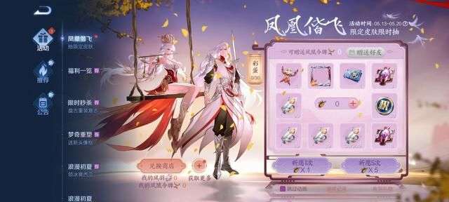 A3:在凤凰偕飞活动中通过祈福获得凤凰令牌或者398数量的凤羽,就可以在兑换商店兑换限定皮肤,2个令牌可以兑换一个凤求凰皮肤,1个令牌可以兑换凤凰于飞皮肤;