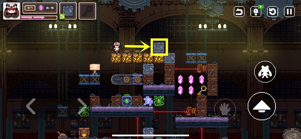 2.然后我们再把飞行器推到图二的位子,打开开关把石头击碎,然后再按开关。箱子就会掉落到凹坑里。