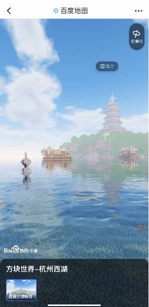 惊喜联动一:11款像素化全景地图,360度环绕视角的像素世界来到百度地图。那么都有哪些像素化全景地图可以打卡呢?昨天刚刚公布的西湖与西溪湿地联动地图就是其中之一,当冒险家们游览诗情画意的西湖、稻香鱼肥的西溪湿地时,你不仅可以在《我的世界》中一览像素西湖的景色,还能在百度地图中喊上家人与小伙伴们一起打卡。